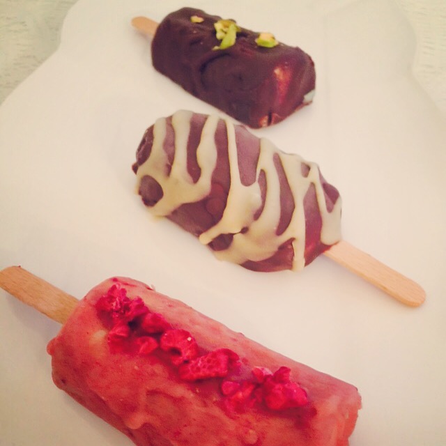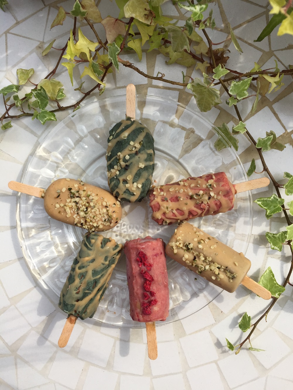 アイスを2層にしたり、ローチョコでコーティングしてヘンプナッツをトッピングしたり♪