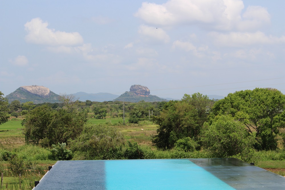 アーリヤリゾートホテルからシーギリヤロックを眺めるとこんな感じです。