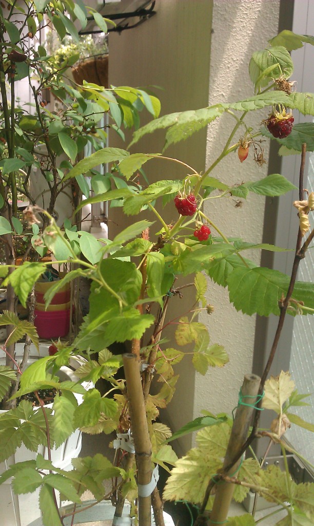 ベランダでラズベリーを数種類ほど育てているのですが、先週あたりからインディアンサマーが真っ先に色づき始め、今朝触ってみると、数個食べごろなやわらかさになっていました!
