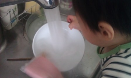 いつも床が水浸しになって私の掃除が増えるだけだし、お皿もしっかり洗えていないし。。。それでも本人的には「お手伝い!」と言いながら得意げにやってくれるので、やってもらっています(笑)。