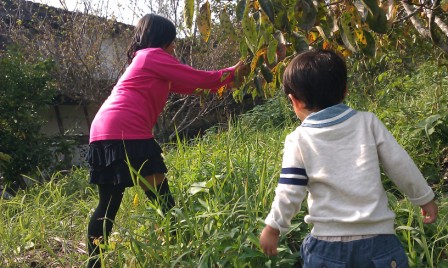 兄の娘と一緒に柿をとったり、近所のお家に一人で遊びに行ったり、畑や山をかけずり回ったり、子どもにとって自然の中は一番の遊び場ですね。