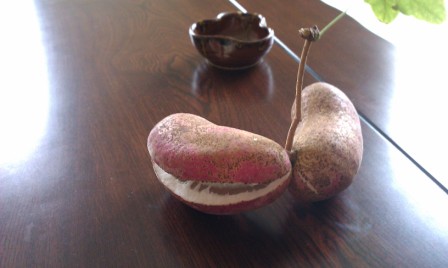 こちらも地元の知人から山で見つけたと言っていただいたアケビ。