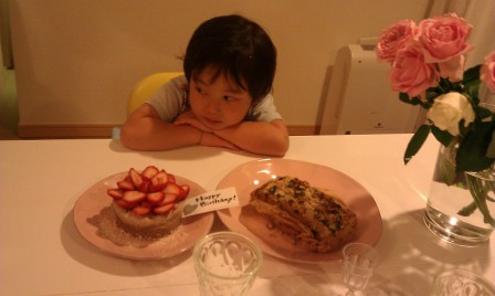 そして4月で長男もやっと4歳になったので、久々にイチゴのローケーキを作りました。
