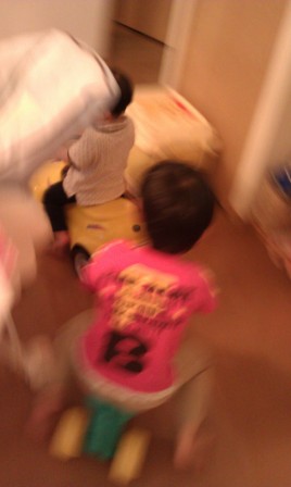 小さいのに二人ともスピード狂なので、テーブルの角で頭をぶつけないか私はいつもヒヤヒヤです。