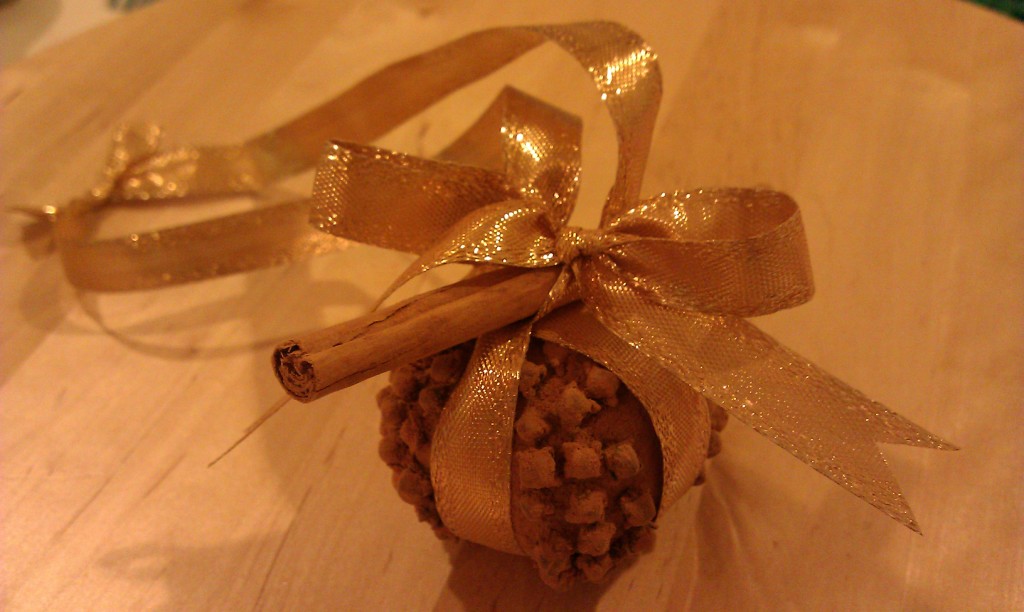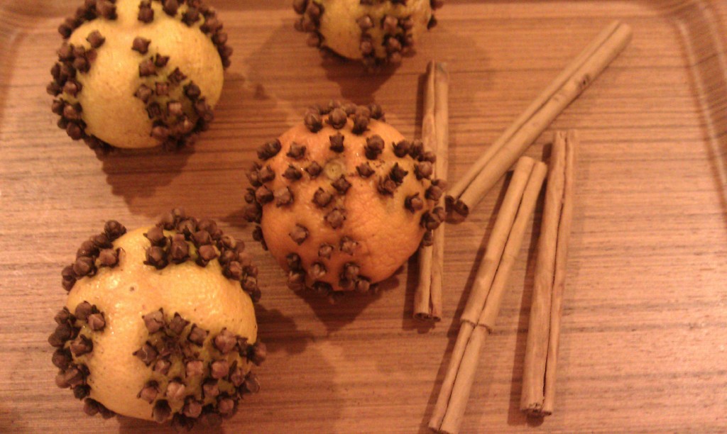柑橘系の果物にクローブを刺してシナモンをまぶし、数週間乾燥させれば出来上がりです!