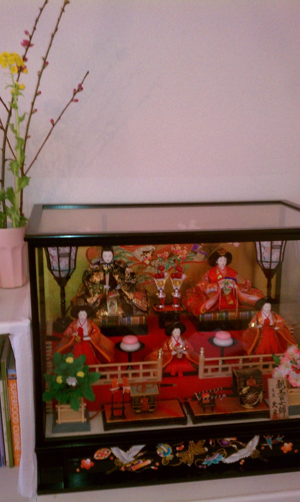 日曜日は義母も遊びに来て、長女の初めてのひなまつりをお祝いしましたが、旧暦では4月12日(2013年の場合)で、本来は桜や桃の花が咲く頃なんですよね。