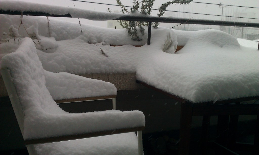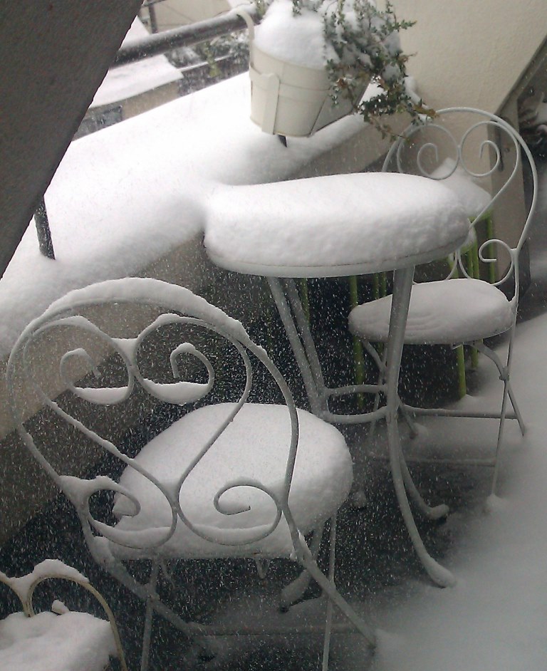 朝起きるとベランダに雪のテーブルとイスが。。。