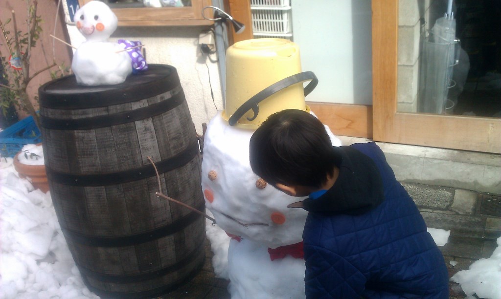 商店街の雪だるまにウキウキ♪