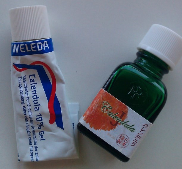 左からヴェレーダのカレンデュラジェルとホメオパシージャパンのカレンデュラチンクチャー。