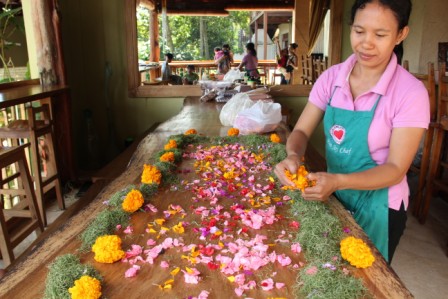 毎食、毎食、テーブルにはお花がちりばめられ、とても贅沢なローフードの食事。