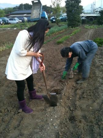 そしてそのお婆ちゃんの畑でインゲン豆を植えるのを手伝いました。