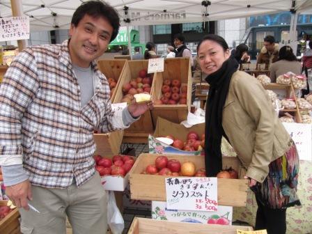 このファーマーズマーケットで、毎週、なんと青森県から車で9時間かけてやってくるという有機りんごのお店を見つけました!!