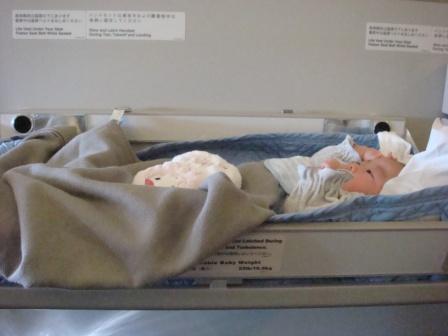 ↓ 機内でバシネットを使うのは初めてだったのですが、