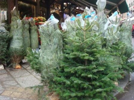 そして通りの花屋さんではクリスマス用の大きなもみの木がズラリ。