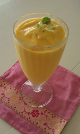 猛暑の日にはマンゴーを凍らせ、氷もかなり入れ、フラッペにしていただきます。