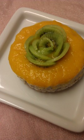 今月は次男の1歳の誕生日だったので、マンゴー&パイナップルソースにキウイをトッピングしたローチーズケーキでお祝いしました。