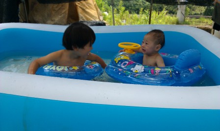 そして父が畑のそばに作ってくれたプールで、子どもたちは毎日のように水遊びをしていました。