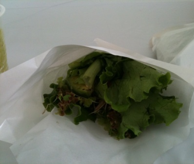 そして今日の私のランチは、シャリマ・ドゥ・ラ・テフテフのロー・バーガーとスムージー、そして帰りにマナのローフード・デリも購入して大満足。