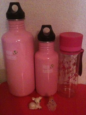 左からお気に入りのクリーン・カンティーンの約1Lとハーフサイズのボトル。