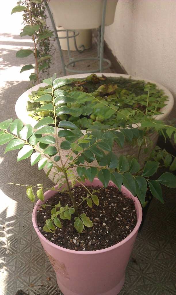 カレーリーフの後ろの水草が凄いことになっていて、溢れそうです。。。