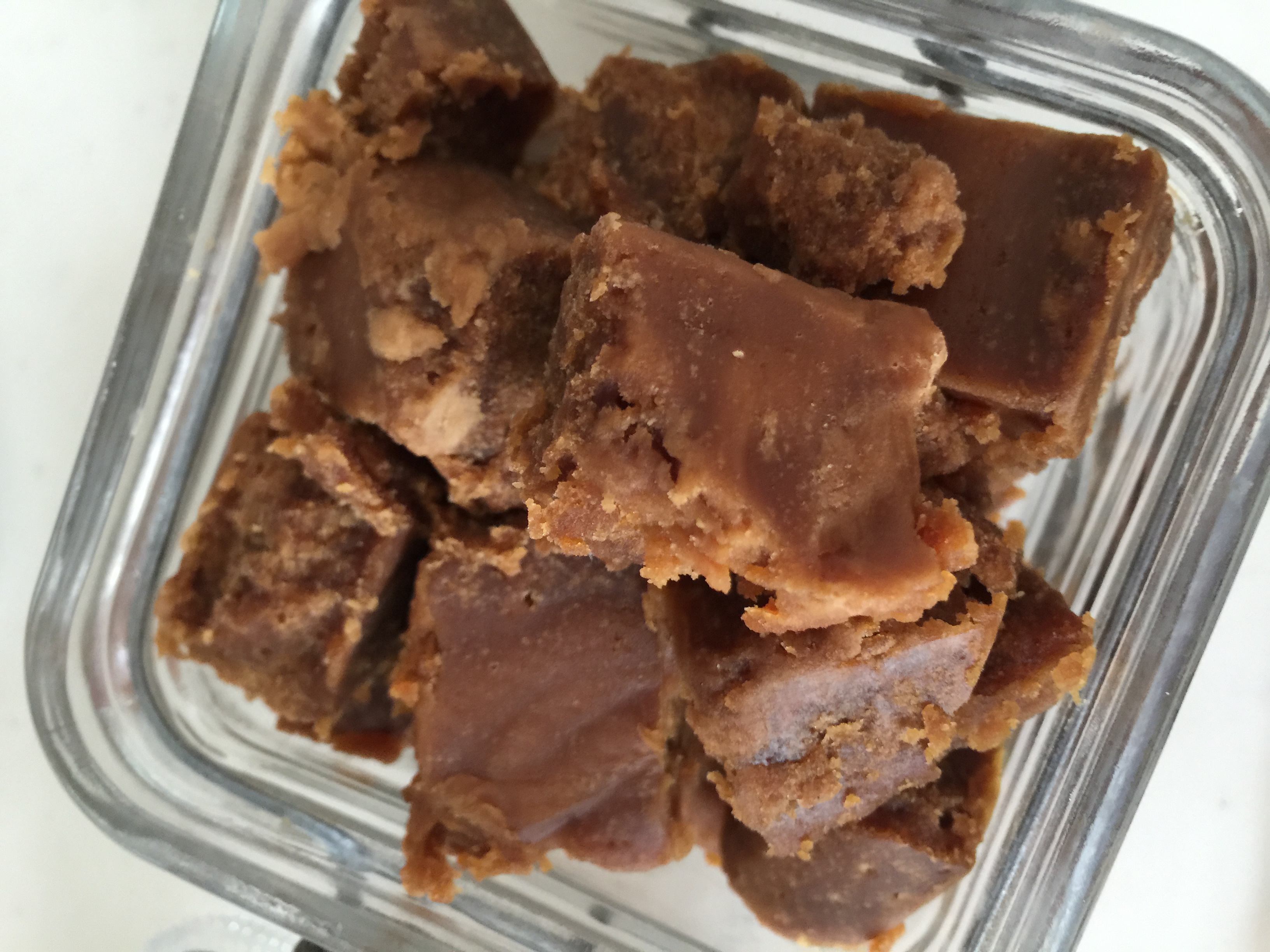 普通のスーパーではさとうきびを入れて固めた混ぜもの系ジャガリばかりなので、選ぶときはよく注意してくださいね!
